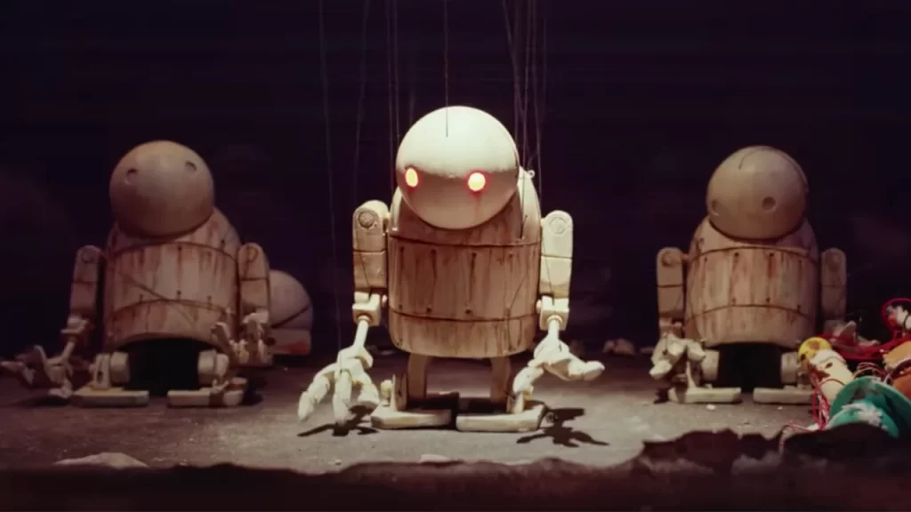 El show de títeres dura 15 minutos y nos cuenta a grandes rasgos la historia de Nier: Automata. Sin embargo en lugar de tener a 2B y 9S como los protagonistas, vemos a algunos de los amistosos robots regordetes del juego. Además de que no tiene algunas de las partes más emotivas.