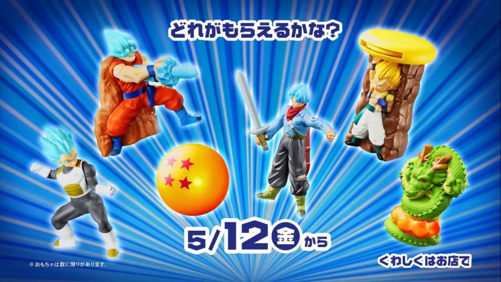 Simplemente no te importa pagar 25 pesos más a tu paquete, ya que dios ¿a quien no le gustaría un Rayquaza de juguete? pues bien ahora McDonald en Japón lanzó los juguetes de Dragon Ball Super son 6 coleccionables y son: Goku Blue, Trunks del Futuro, Shen Long, Gotenks ,una esfera del dragon y Vegueta Blue.
