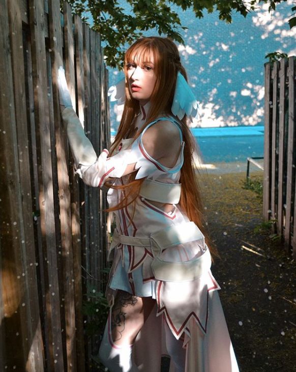 Hay muchas cosas que hacen de este cosplay una imagen fiel de Asuna en Sword Art Online: Alicization como la diosa de la creación Stacia.