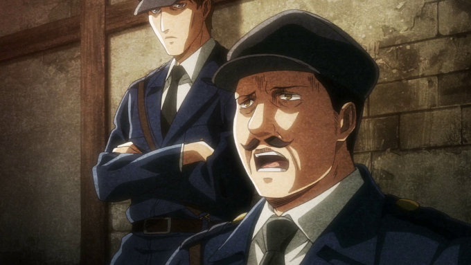 Es entonces que es golpeado brutalmente por el agente de la ley, mientras que el otro se lleva a la niña para que no vea cómo golpea a su hermano. Después de ese salvaje golpe en Attack on Titan, Grisha se dispone a irse.
