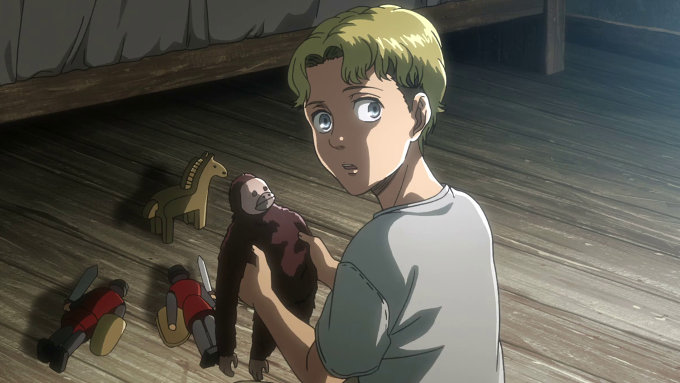 La escena extra de la semana anterior nos mostraba a Grisha y su hermanita Faye corriendo para ver el dirigible que apareció antes. Logran su objetivo, pero es cuando se revela que la gente que vive más allá de la barrera los desprecia por ser eldianos, miembros de un antiguo pueblo.