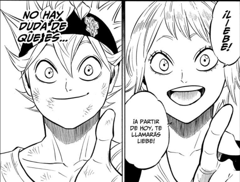 En el capítulo 270 de Black Clover vemos que Asta derrotó a su demonio en el ritual de vinculación y, como resultado, puede formar un contrato que obligue a su demonio a obedecer todas sus órdenes. Sin embargo, en lugar de hacer eso, Asta forma un contrato con ambos como iguales porque él sintió que Liebe no tenía ninguna intención real de matarlo durante la pelea.