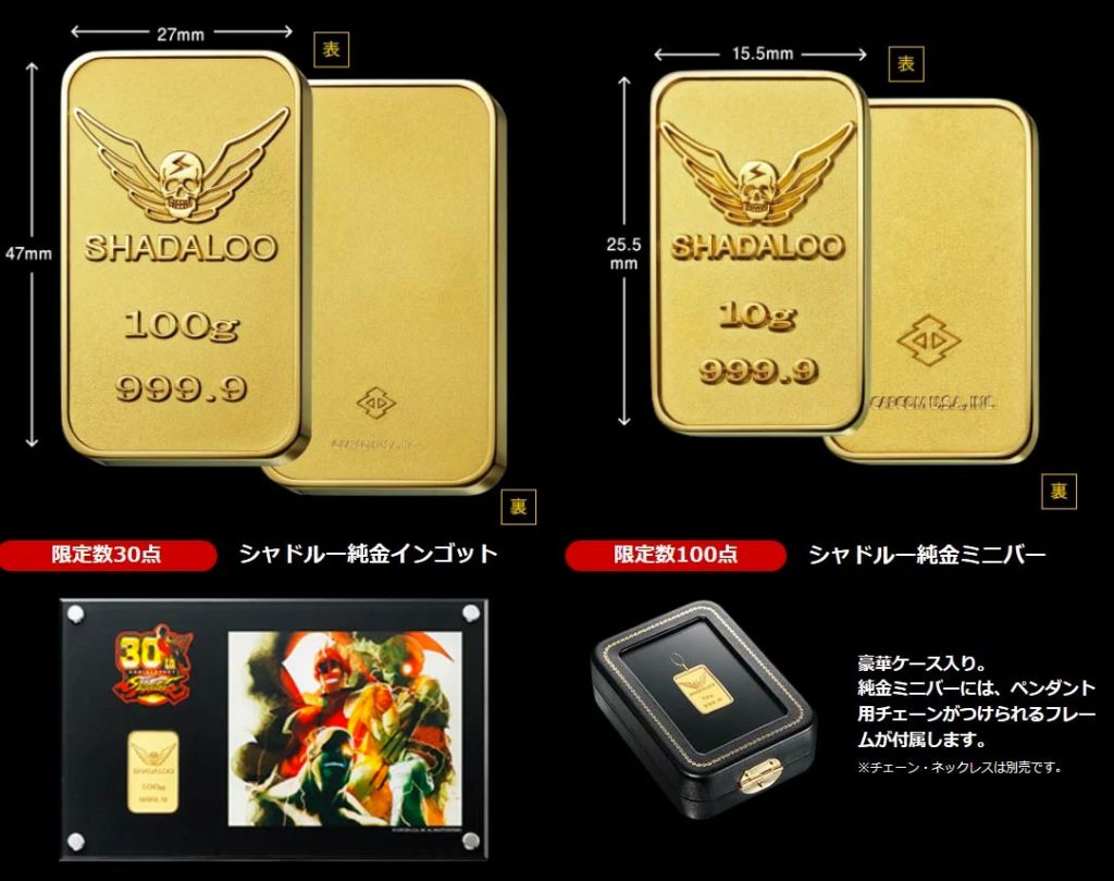 Ahora, ¿tienes tanto dinero como el chico que gastó más de 300 mil pesos FIFA 17 y 18? Capcom está lanzando estos lingotes de oro con el logo del imperio de M. Bison, Shadaloo. Sí, es oro, no se ve igual que el de las caricaturas, pero, tiene un valor realmente elevado.