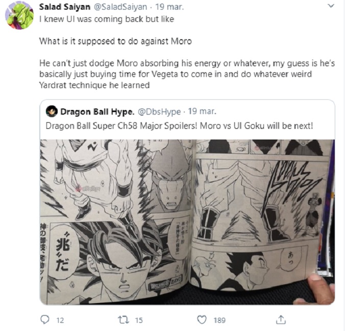 ‘Sé que el Ultra Instinto volverá pero ¿qué se supone que hará contra Moro? No puede simplemente esquivar a Moro que absorbe la energía o lo que sea, creo que simplemente comprará tiempo para que Vegeta llegue y haga alguna extraña técnica Yardrat que haya aprendido’.